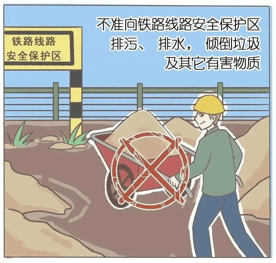 《铁路安全管理条例》第二十九条规定:禁止向铁路线路安全保护区排污、倾倒垃圾以及其他危害铁路安全的物质。
